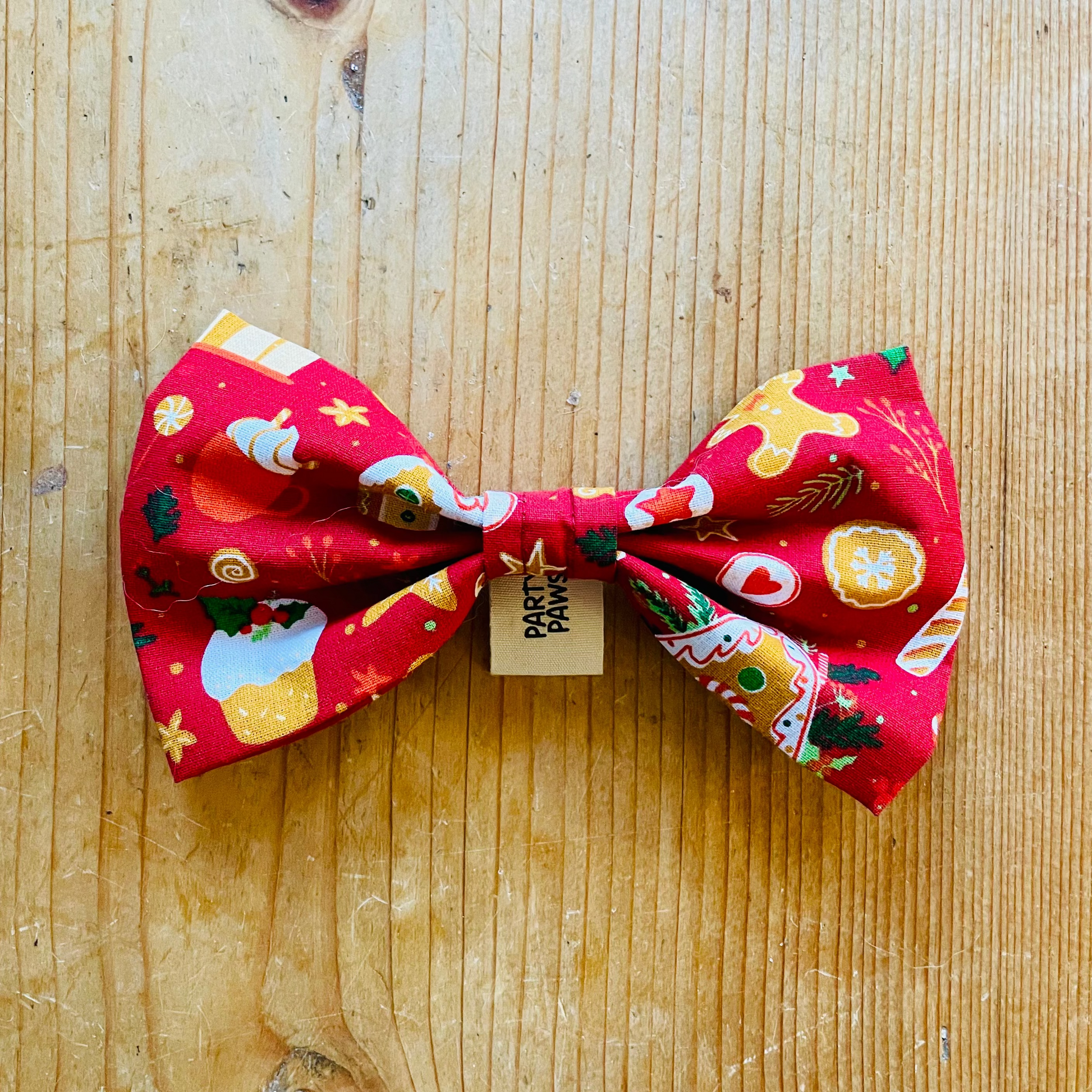 Diese weihnachtliche Hundefliege im Lebkuchen-Design ist das perfekte Accessoire für festliche Fotos, Weihnachtsfeiern oder den Heiligabend mit der Familie. Das warme Muster in karminrot verleiht jedem Vierbeiner einen charmanten, winterlichen Look.